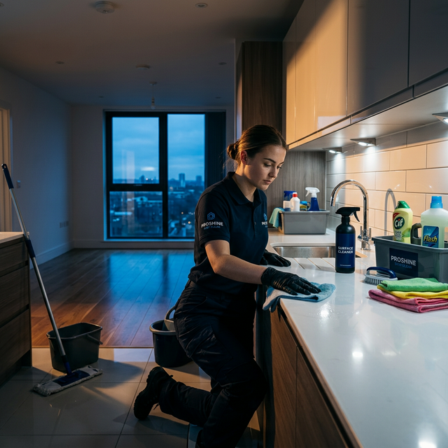 General-purpose cleaners are insufficient for end of tenancy cleaning. You need specialized products: heavy-duty degreasers for kitchens, limescale removers for bathrooms, mold removers, and professional sanitizers. Using wrong products can damage surfaces or leave residue.